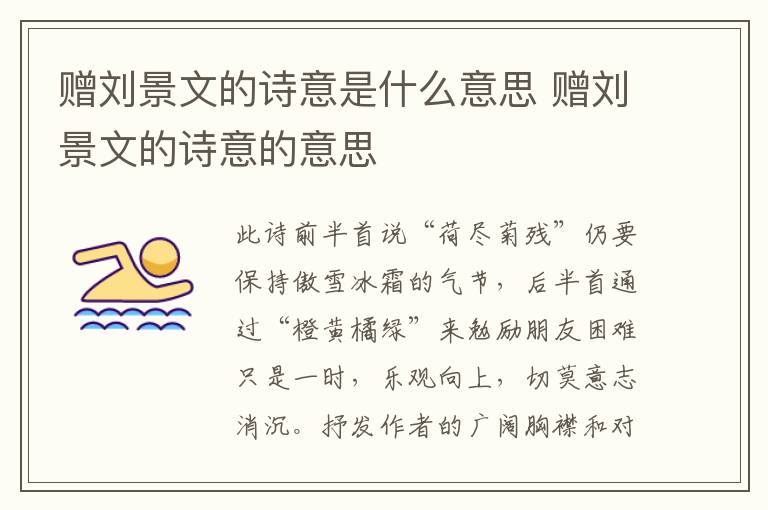 此诗前半首说“荷尽菊残”仍要保持傲雪冰霜的气节,后半首通过“橙黄橘绿”来勉励朋友困难只是一时,乐观向上,切莫意志消沉。抒发作者的广阔胸襟和对同处窘境中友人的劝勉和支持,托物言志,意境高远。