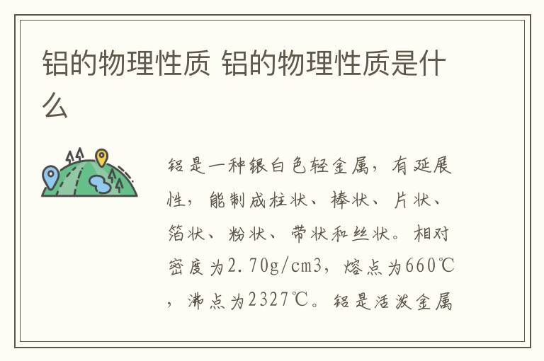 铝是一种银白色轻金属,有延展性,能制成柱状、棒状、片状、箔状、粉状、带状和丝状。相对密度为2.70g/cm3,熔点为660℃,沸点为2327℃。
