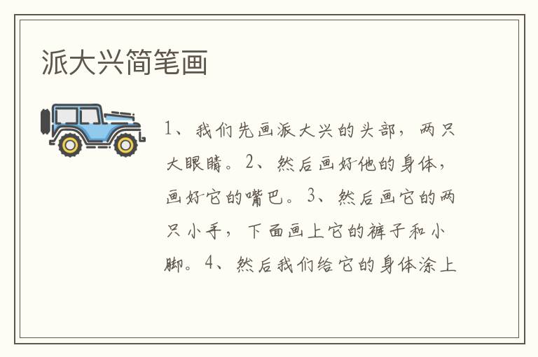 派大兴简笔画 知识分享 10月6日 编辑 童画 取消关注 关注 私信 1、我们先画派大兴的头部,两只大眼睛。 2、然后画好他的身体,画好它的嘴巴。 3、然后画它的两只小手,下面画上它的裤子和小脚。 4、然后我们给它的身体涂上淡红色,裤子上涂上绿色的花纹,裤子涂成深绿色就可以了。 No related posts. 本文内容由互联网用户自发贡献,该文观点仅代表作者本人。本站仅提供信息存储空间服务,不拥有所有权,不承担相关法律责任。如发现本站有涉嫌抄袭侵权/违法违规的内容, 请发送邮件至 2245678901@qq.com 举报,一经查实,本站将立刻删除。 给TA打赏 共{{data.count}}人 人已打赏