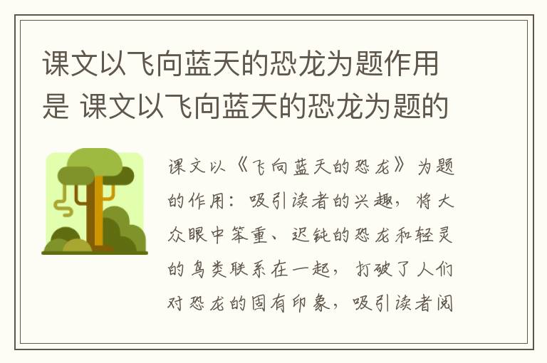 课文以《飞向蓝天的恐龙》为题的作用:吸引读者的兴趣,将大众眼中笨重、迟钝的恐龙和轻灵的鸟类联系在一起,打破了人们对恐龙的固有印象,吸引读者阅读下文;同时这个题目也揭示了文章主题,即介绍恐龙的演化史。