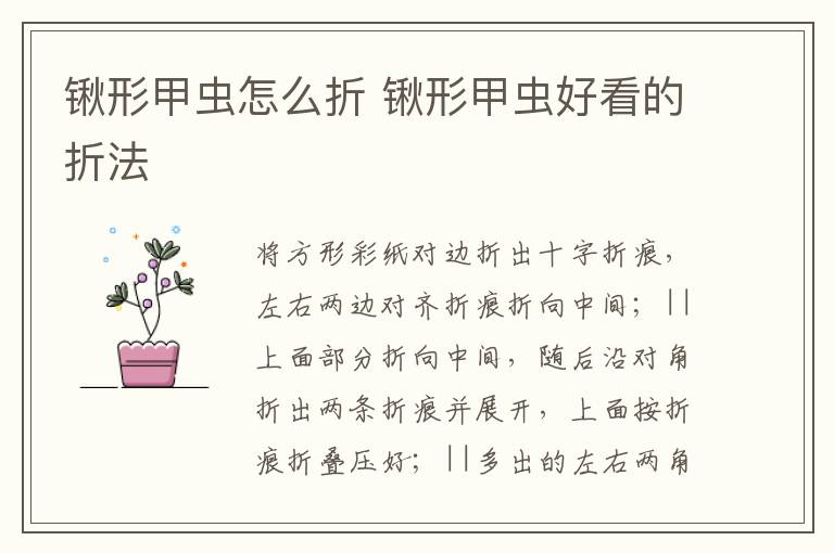 锹形甲虫怎么折 锹形甲虫好看的折法 知识分享 11小时前 编辑 童画 取消关注 关注 私信 1、拿出方形彩纸,对边折出十字折痕,左右两边对齐折痕折向中间。 2、上面部分折向中间,随后沿对角折出两条折痕并展开,上面按折痕折叠压好。 3、多出的左右两角留一部分向上折叠,翻面,下面往上折叠。 4、再翻面,左右两边向内折,两底角稍微折一点,整理好后锹形甲虫就折好了。 No related posts. 本文内容由互联网用户自发贡献,该文观点仅代表作者本人。本站仅提供信息存储空间服务,不拥有所有权,不承担相关法律责任。如发现本站有涉嫌抄袭侵权/违法违规的内容, 请发送邮件至 2245678901@qq.com 举报,一经查实,本站将立刻删除。 给TA打赏 共{{data.count}}人 人已打赏