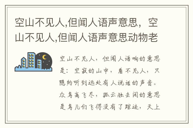 空山不见人,但闻人语响的意思是空寂的山中,看不见人,只隐约听到远处有人说话的声音。众鸟高飞尽,孤云独去闲的意思是鸟儿们飞得没有了踪迹,天上飘浮的孤云也不愿意留下,慢慢向远处飘去。这是写景诗。描写鹿柴傍晚时分的幽静景色。诗的绝妙处在于以动衬静,以局部衬全局,清新自然,毫不做作。