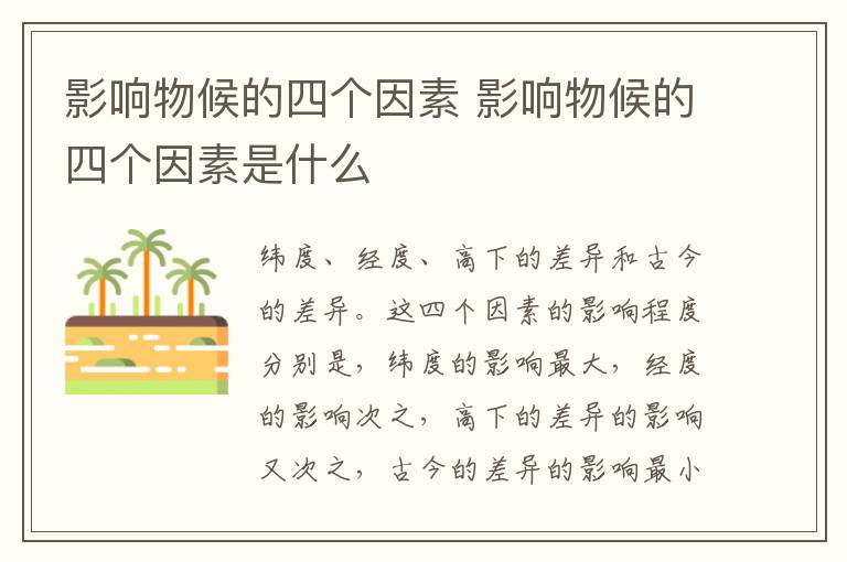 影响物候的四个因素 影响物候的四个因素是什么 知识分享 23年2月8日 编辑 童画 取消关注 关注 私信 影响物候的四个因素是纬度、经度、高下的差异和古今的差异。这四个因素的影响程度分别是,纬度的影响最大,经度的影响次之,高下的差异的影响又次之,古今的差异的影响最小。 No related posts. 本文内容由互联网用户自发贡献,该文观点仅代表作者本人。本站仅提供信息存储空间服务,不拥有所有权,不承担相关法律责任。如发现本站有涉嫌抄袭侵权/违法违规的内容, 请发送邮件至 2245678901@qq.com 举报,一经查实,本站将立刻删除。 给TA打赏 共{{data.count}}人 人已打赏