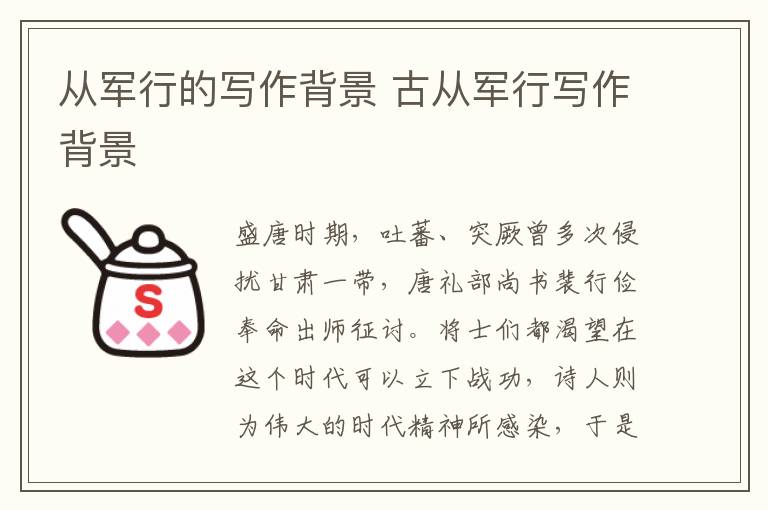 盛唐时期,吐蕃、突厥曾多次侵扰甘肃一带,唐礼部尚书裴行俭奉命出师征讨。将士们都渴望在这个时代可以立下战功,诗人则为伟大的时代精神所感染,于是王昌龄便作了《从军行》来表达边塞将士的宏伟壮志。