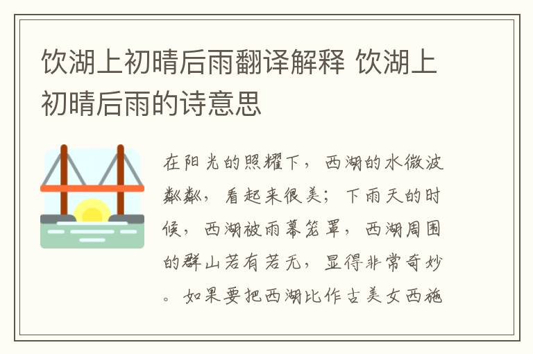 诗的第一句描写了西湖晴天时候的水光,第二句则是下雨时候西湖的美景,作者通过描写不同天气下的湖山盛景,表现出了自己洒脱的性格和开阔的胸怀。