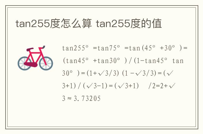 tan255°=tan75°=tan(45°+30°)=(tan45°+tan30°)/(1-tan45°tan30°)=(1+√3/3)(1