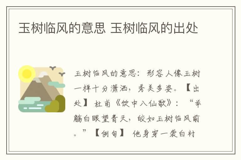玉树临风的意思 玉树临风的出处 知识分享 3小时前 编辑 童画 取消关注 关注 私信 【读音】 yù shù lín fēng 【释义】 形容人像玉树一样十分潇洒,秀美多姿。 【出处】 杜甫《饮中八仙歌》:“举觞白眼望青天,皎如玉树临风前。” 【近义词】气宇轩昂 风流倜傥 风度翩翩 【反义词】尖嘴猴腮 萎靡不振 【例句】 他身穿一袭白衬衫,托出他的玉树临风,风流倜傥。 No related posts. 本文内容由互联网用户自发贡献,该文观点仅代表作者本人。本站仅提供信息存储空间服务,不拥有所有权,不承担相关法律责任。如发现本站有涉嫌抄袭侵权/违法违规的内容, 请发送邮件至 2245678901@qq.com 举报,一经查实,本站将立刻删除。 给TA打赏 共{{data.count}}人 人已打赏