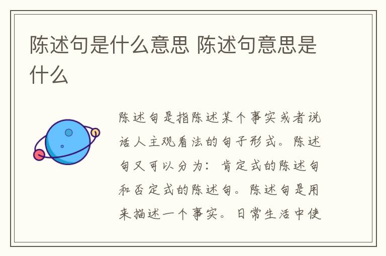 陈述句是指陈述某个事实或者说话人主观看法的句子形式。陈述句又可以分为:肯定式的陈述句和否定式的陈述句。陈述句是用来描述一个事实。日常生活中使用的大部分句子都是陈述句。
