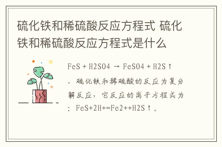 硫化铁和稀硫酸反应方程式 硫化铁和稀硫酸反应方程式是什么 知识分享 10月12日 编辑 童画 取消关注 关注 私信 硫化铁和稀硫酸反应方程式为:FeS + H2SO4 → FeSO4 + H2S↑。 硫化铁和稀硫酸的反应为复分解反应,它反应的离子方程式为:FeS+2H+=Fe2++H2S↑。 No related posts. 本文内容由互联网用户自发贡献,该文观点仅代表作者本人。本站仅提供信息存储空间服务,不拥有所有权,不承担相关法律责任。如发现本站有涉嫌抄袭侵权/违法违规的内容, 请发送邮件至 2245678901@qq.com 举报,一经查实,本站将立刻删除。 给TA打赏 共{{data.count}}人 人已打赏