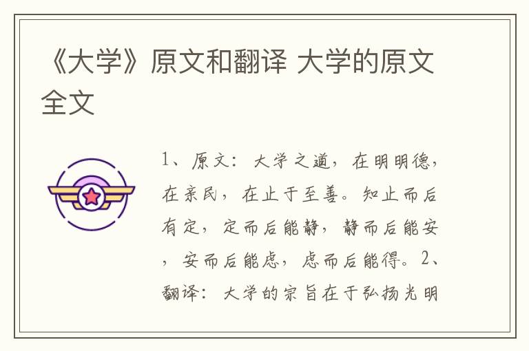 大学的宗旨在于弘扬光明正大的品德,在于使人弃旧图新,在于使人达到最完善的境界并且保持不变。