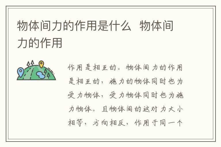 物体间力的作用是什么 物体间力的作用 知识分享 10月15日 编辑 童画 取消关注 关注 私信 物体间力的作用是相互的。物体间力的作用是相互的,施力的物体同时也为受力物体,受力物体同时也为施力物体。且物体间的这对力大小相等,方向相反,作用于同一个物体上。且这对力同时产出,同时消失。 No related posts. 本文内容由互联网用户自发贡献,该文观点仅代表作者本人。本站仅提供信息存储空间服务,不拥有所有权,不承担相关法律责任。如发现本站有涉嫌抄袭侵权/违法违规的内容, 请发送邮件至 2245678901@qq.com 举报,一经查实,本站将立刻删除。 给TA打赏 共{{data.count}}人 人已打赏