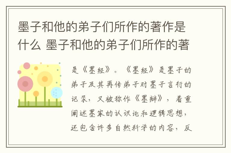墨子与其弟子所作的著作是《墨经》。《墨经》是墨子的弟子及其再传弟子对墨子言行的记录,又被称作《墨辩》,着重阐述墨家的认识论和逻辑思想,还包含许多自然科学的内容,反映了后期墨家的思想。《墨经》内容广博,包括了政治、军事、哲学、伦理、逻辑、科技等方面,是研究墨子及其后学的重要史料