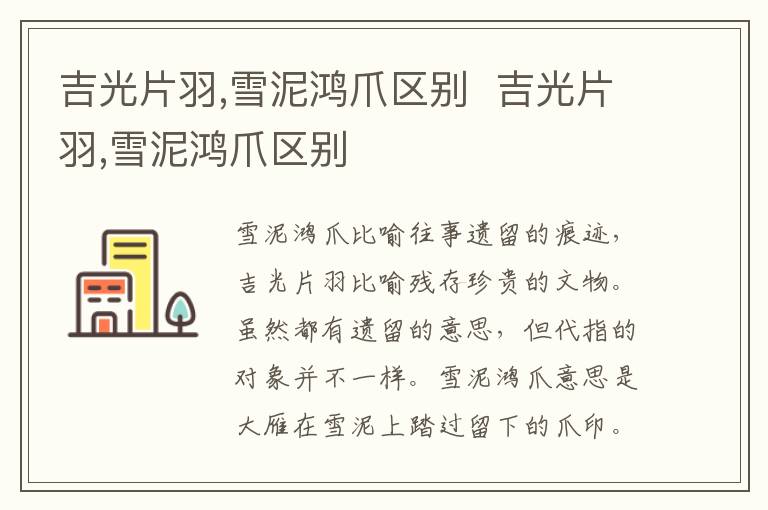 雪泥鸿爪比喻往事遗留的痕迹,吉光片羽比喻残存珍贵的文物。虽然都有遗留的意思,但代指的对象并不一样。