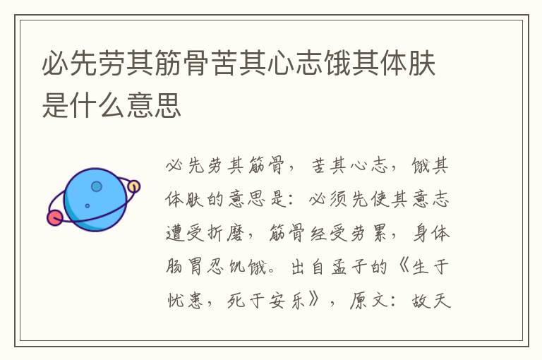 必先劳其筋骨苦,其心志饿其体肤的意思是:必须先使其意志遭受折磨,筋骨经受劳累,身体肠胃忍饥饿,出自《生于忧患,死于安乐》选自《孟子·告子下》。