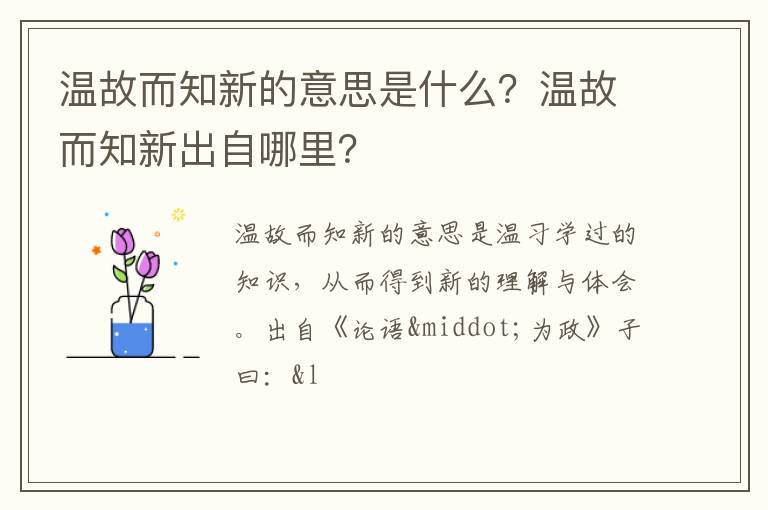 温故而知新的意思是温习学过的知识,从而得到新的理解与体会。出自《论语·为政》子曰:“温故而知新,可以为师矣。”