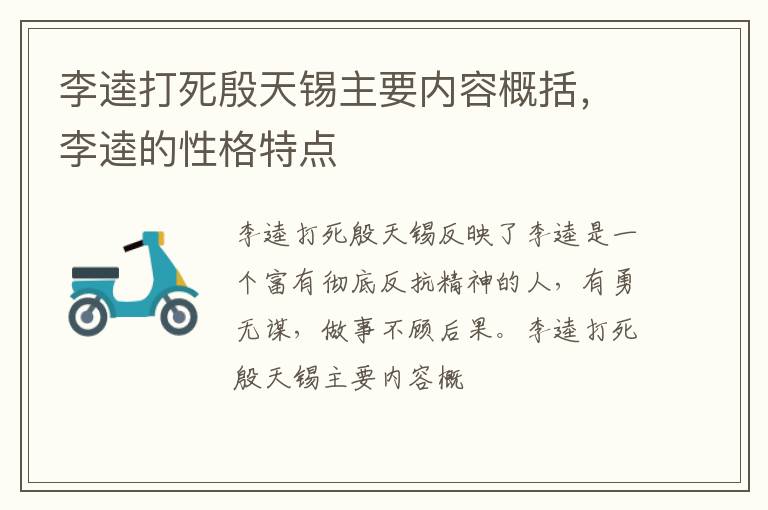 李逵打死殷天锡反映了李逵是一个富有彻底反抗精神的人,有勇无谋,做事不顾后果。