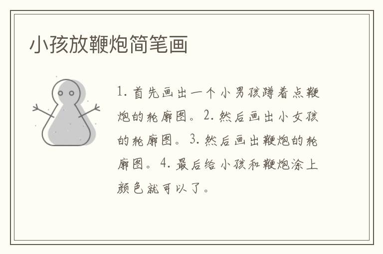小孩放鞭炮简笔画 知识分享 23年2月9日 编辑 童画 取消关注 关注 私信 1.首先画出一个小男孩蹲着点鞭炮的轮廓图。 2.然后画出小女孩的轮廓图。 3.然后画出鞭炮的轮廓图。 4.最后给小孩和鞭炮涂上颜色就可以了。 No related posts. 本文内容由互联网用户自发贡献,该文观点仅代表作者本人。本站仅提供信息存储空间服务,不拥有所有权,不承担相关法律责任。如发现本站有涉嫌抄袭侵权/违法违规的内容, 请发送邮件至 2245678901@qq.com 举报,一经查实,本站将立刻删除。 给TA打赏 共{{data.count}}人 人已打赏