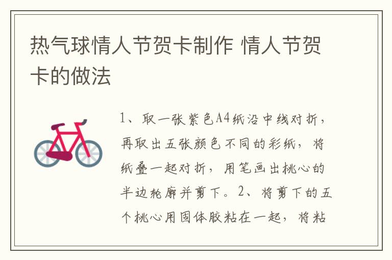 2、将剪下的五个桃心用固体胶粘在一起,将粘好的桃心贴在贺卡中上方做成热气球。