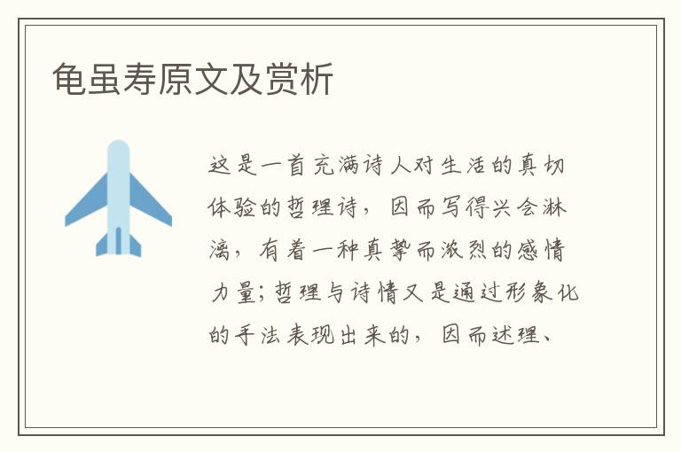 赏析:这是一首充满诗人对生活的真切体验的哲理诗,因而写得兴会淋漓,有着一种真挚而浓烈的感情力量;哲理与诗情又是通过形象化的手法表现出来的,因而述理、明志、抒情在具体的艺术形象中实现了完美的结合。