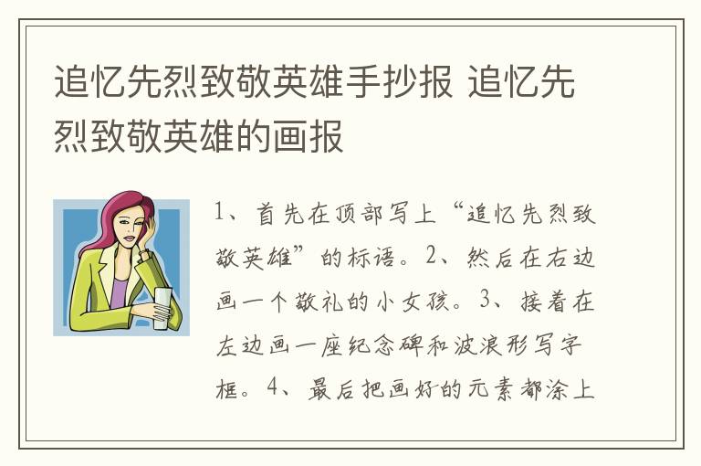 追忆先烈致敬英雄手抄报 追忆先烈致敬英雄的画报 知识分享 23年2月9日 编辑 童画 取消关注 关注 私信 1、首先在顶部写上“追忆先烈致敬英雄”的标语。 2、然后在右边画一个敬礼的小女孩。 3、接着在左边画一座纪念碑和波浪形写字框。 4、最后把画好的元素都涂上相应的颜色即可。 No related posts. 本文内容由互联网用户自发贡献,该文观点仅代表作者本人。本站仅提供信息存储空间服务,不拥有所有权,不承担相关法律责任。如发现本站有涉嫌抄袭侵权/违法违规的内容, 请发送邮件至 2245678901@qq.com 举报,一经查实,本站将立刻删除。 给TA打赏 共{{data.count}}人 人已打赏
