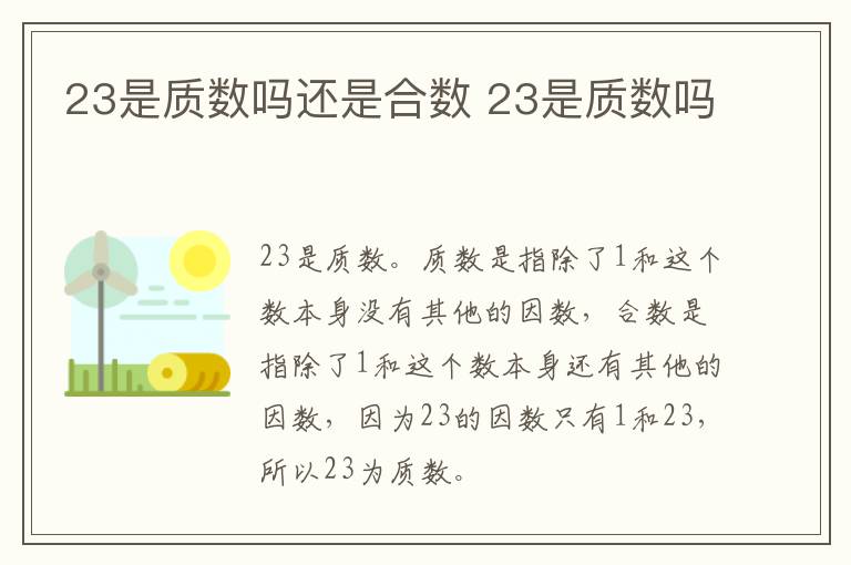 质数是指除了1和这个数本身没有其他的因数,合数是指除了1和这个数本身还有其他的因数,因为23的因数只有1和23,所以23为质数。