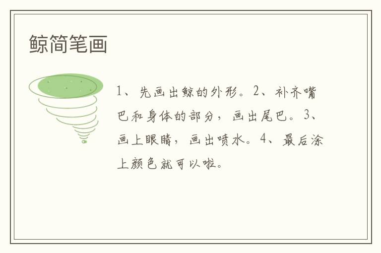 鲸简笔画 知识分享 23年2月9日 编辑 童画 取消关注 关注 私信 1、先画出鲸的外形。 2、补齐嘴巴和身体的部分,画出尾巴。 3、画上眼睛,画出喷水。 4、最后涂上颜色就可以啦。 No related posts. 本文内容由互联网用户自发贡献,该文观点仅代表作者本人。本站仅提供信息存储空间服务,不拥有所有权,不承担相关法律责任。如发现本站有涉嫌抄袭侵权/违法违规的内容, 请发送邮件至 2245678901@qq.com 举报,一经查实,本站将立刻删除。 给TA打赏 共{{data.count}}人 人已打赏