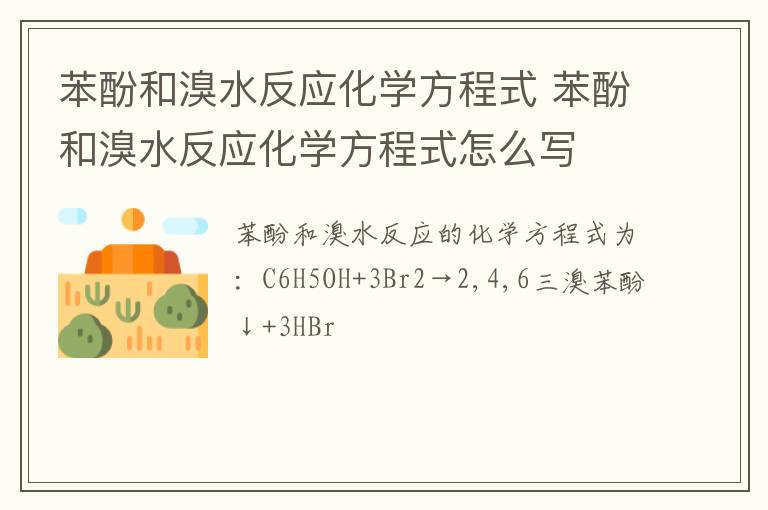 苯酚和溴水反应的化学方程式为:C6H5OH+3Br2→2,4,6三溴苯酚↓+3HBr,苯酚与溴水将会产生取代反应,生成2,4,6三溴苯酚和氢溴酸。