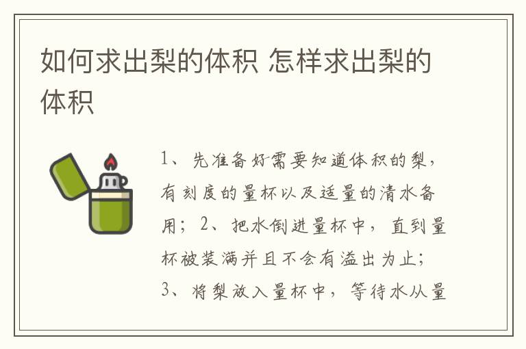 如何求出梨的体积 怎样求出梨的体积 知识分享 10月28日 编辑 童画 取消关注 关注 私信 求出梨的体积的步骤是: 1、先准备好需要知道体积的梨,有刻度的量杯以及适量的清水备用; 2、把水倒进量杯中,直到量杯被装满并且不会有溢出为止; 3、将梨放入量杯中,等待水从量杯中溢出,直到量杯中的水面静止为止; 4、观察量杯上的刻度变化,用刻度相减即可得到梨的体积。 No related posts. 本文内容由互联网用户自发贡献,该文观点仅代表作者本人。本站仅提供信息存储空间服务,不拥有所有权,不承担相关法律责任。如发现本站有涉嫌抄袭侵权/违法违规的内容, 请发送邮件至 2245678901@qq.com 举报,一经查实,本站将立刻删除。 给TA打赏 共{{data.count}}人 人已打赏