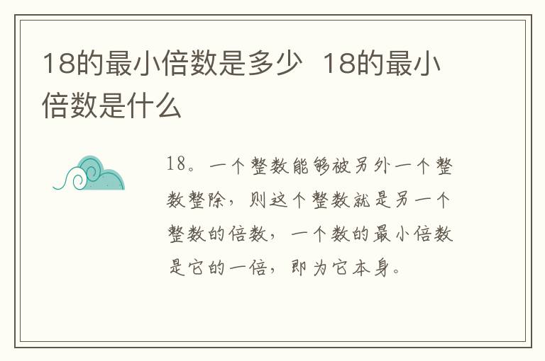 18的最小倍数是多少 18的最小倍数是什么 知识分享 23年2月9日 编辑 童画 取消关注 关注 私信 18的最小倍数是18。一个整数能够被另外一个整数整除,则这个整数就是另一个整数的倍数,一个数的最小倍数是它的一倍,即为它本身。 No related posts. 本文内容由互联网用户自发贡献,该文观点仅代表作者本人。本站仅提供信息存储空间服务,不拥有所有权,不承担相关法律责任。如发现本站有涉嫌抄袭侵权/违法违规的内容, 请发送邮件至 2245678901@qq.com 举报,一经查实,本站将立刻删除。 给TA打赏 共{{data.count}}人 人已打赏