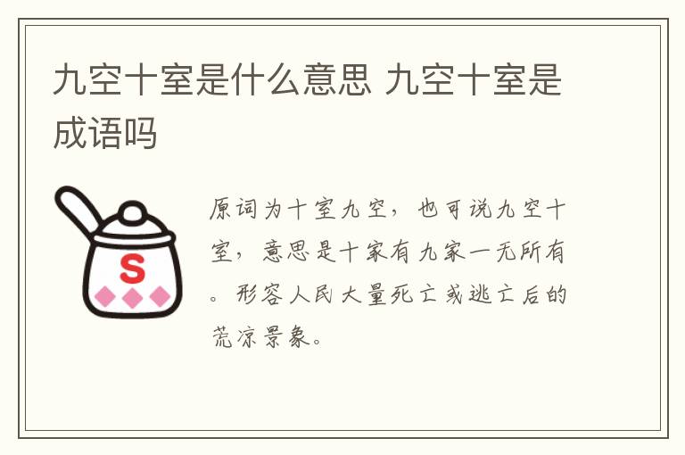 九空十室是什么意思 九空十室是成语吗 知识分享 10月31日 编辑 童画 取消关注 关注 私信 原词为十室九空,也可说九空十室,意思是十家有九家一无所有。形容人民大量死亡或逃亡后的荒凉景象。出自《抱朴子·用刑》:“徐福出而重号淘之仇,赵高入而屯豺狼之党,天下欲反,十室九空”。 No related posts. 本文内容由互联网用户自发贡献,该文观点仅代表作者本人。本站仅提供信息存储空间服务,不拥有所有权,不承担相关法律责任。如发现本站有涉嫌抄袭侵权/违法违规的内容, 请发送邮件至 2245678901@qq.com 举报,一经查实,本站将立刻删除。 给TA打赏 共{{data.count}}人 人已打赏