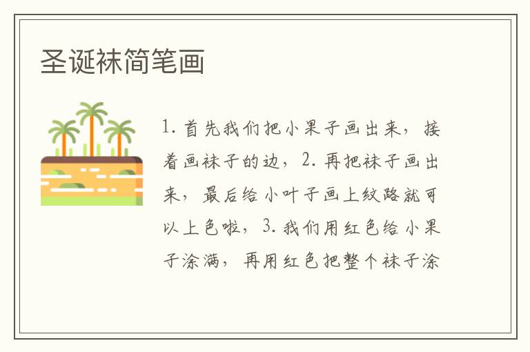 圣诞袜简笔画 知识分享 23年2月9日 编辑 童画 取消关注 关注 私信 1.首先我们把小果子画出来,接着画袜子的边, 2.再把袜子画出来,最后给小叶子画上纹路就可以上色啦, 3.我们用红色给小果子涂满,再用红色把整个袜子涂满, 4.最后用绿色把小叶子涂满,这样就完成啦。 No related posts. 本文内容由互联网用户自发贡献,该文观点仅代表作者本人。本站仅提供信息存储空间服务,不拥有所有权,不承担相关法律责任。如发现本站有涉嫌抄袭侵权/违法违规的内容, 请发送邮件至 2245678901@qq.com 举报,一经查实,本站将立刻删除。 给TA打赏 共{{data.count}}人 人已打赏