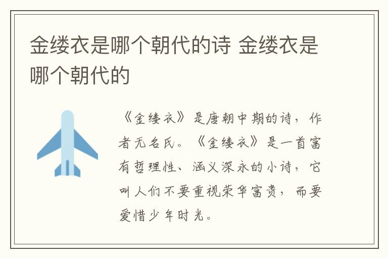 《金缕衣》是唐朝中期的诗歌,是当时的流行歌词,但是作者已经不可考了,具体的创作时间也不可考了。《金缕衣》是一首劝告少年人珍惜时光的唐诗。