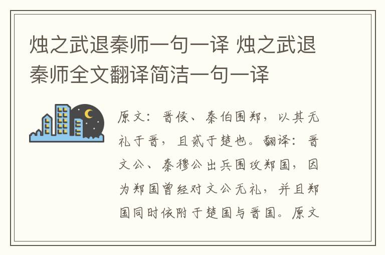 翻译:郑国大夫佚之狐对郑文公说:“国家很危险了!如果派烛之武去见秦国的国君的话,秦国的军队肯定会撤退。”