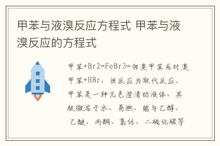 甲苯与液溴反应的方程式为:甲苯+Br2=FeBr3=邻溴甲苯或对溴甲苯+HBr,该反应为取代反应。