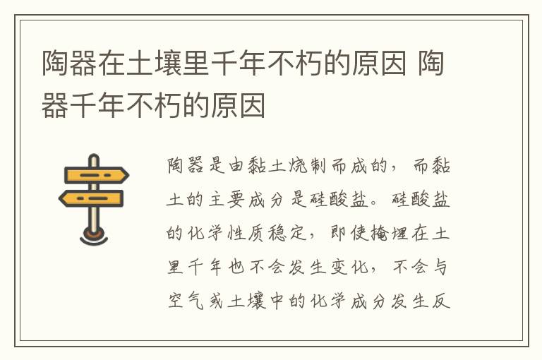 陶器是由黏土烧制而成的,而黏土的主要成分是硅酸盐。硅酸盐的化学性质稳定,即使掩埋在土里千年也不会发生变化,不会与空气或土壤中的化学成分发生反应,所以陶器在土壤里不会腐朽。