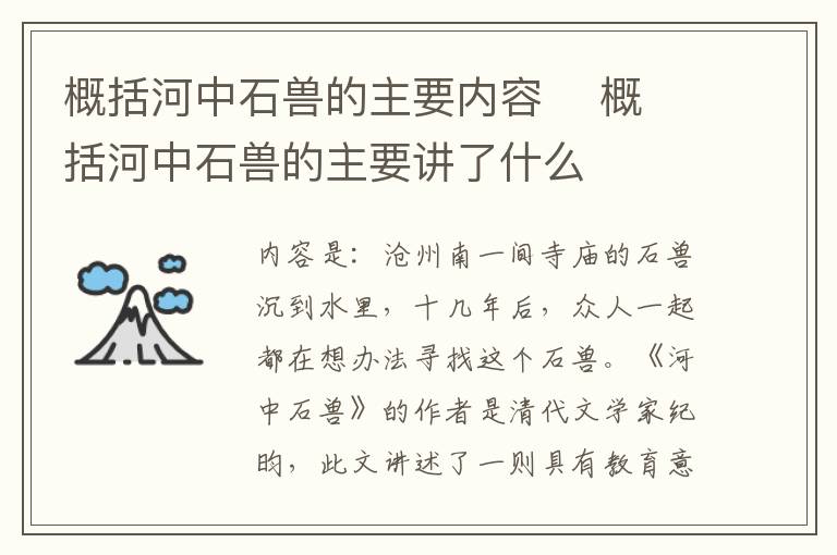 《河中石兽》的主要内容是:沧州南一间寺庙的石兽沉到水里,十几年后,众人一起都在想办法寻找这个石兽。