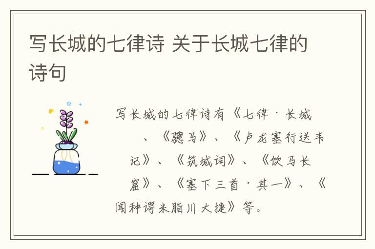 写长城的七律诗有《七律·长城》、《骢马》、《卢龙塞行送韦掌记》、《筑城词》、《饮马长城窟》、《塞下三首·其一》、《闻种谔米脂川大捷》等。