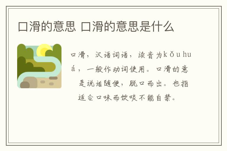 口滑的意思 口滑的意思是什么 知识分享 23年2月9日 编辑 童画 取消关注 关注 私信 口滑,汉语词语,读音为kǒu huá,一般作动词使用。口滑的意思是说话随便,脱口而出。也指因适合口味而饮啖不能自禁。口滑一词出自《水浒传》第七二回:“酒行数巡,宋江口滑,揎拳裸袖,点点指指,把出梁山泊手段来。” 词语造句:武松吃得口滑,只顾要吃。 非他讲得口滑,写得手溜,此龙门法也。 No related posts. 本文内容由互联网用户自发贡献,该文观点仅代表作者本人。本站仅提供信息存储空间服务,不拥有所有权,不承担相关法律责任。如发现本站有涉嫌抄袭侵权/违法违规的内容, 请发送邮件至 2245678901@qq.com 举报,一经查实,本站将立刻删除。 给TA打赏 共{{data.count}}人 人已打赏