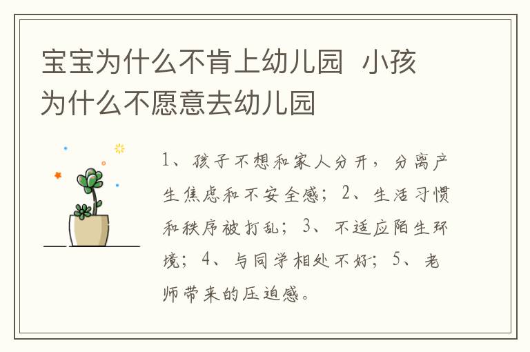 1、孩子不想和家人分开,分离产生焦虑和不安全感;2、生活习惯和秩序被打乱;3、不适应陌生环境;4、与同学相处不好;5、老师带来的压迫感。