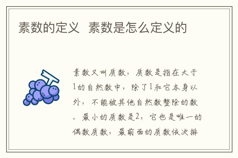 素数的定义 素数是怎么定义的 知识分享 23年2月9日 编辑 童画 取消关注 关注 私信 素数又叫质数,质数是指在大于1的自然数中,除了1和它本身以外,不能被其他自然数整除的数。 例如:3只能被1和3整除,除此之外不能再被其他数字整除,那么3就是质数。 最小的质数是2,它也是唯一的偶数质数,最前面的质数依次排列为:2、3、5、7、11、13、17、19、23、29、31等。 No related posts. 本文内容由互联网用户自发贡献,该文观点仅代表作者本人。本站仅提供信息存储空间服务,不拥有所有权,不承担相关法律责任。如发现本站有涉嫌抄袭侵权/违法违规的内容, 请发送邮件至 2245678901@qq.com 举报,一经查实,本站将立刻删除。 给TA打赏 共{{data.count}}人 人已打赏