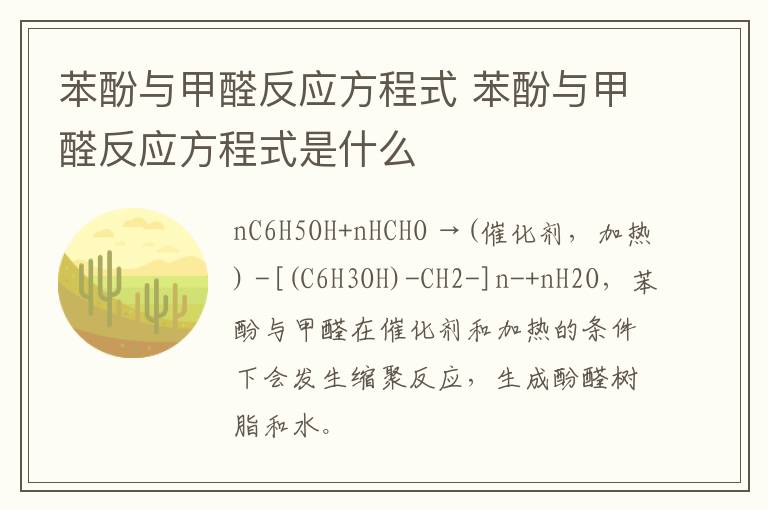 -[(C6H3OH)-CH2-]n-+nH2O,苯酚与甲醛在催化剂和加热的条件下会发生缩聚反应,生成酚醛树脂和水。