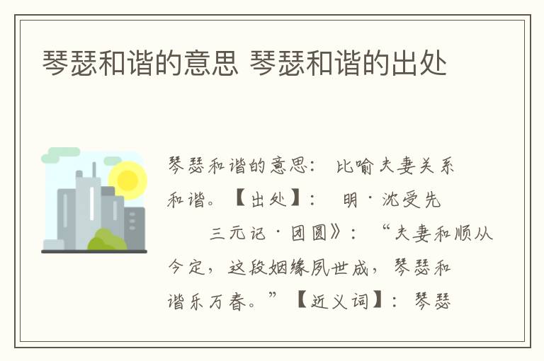 【出处】 明·沈受先《三元记·团圆》:“夫妻和顺从今定,这段姻缘夙世成,琴瑟和谐乐万春。”