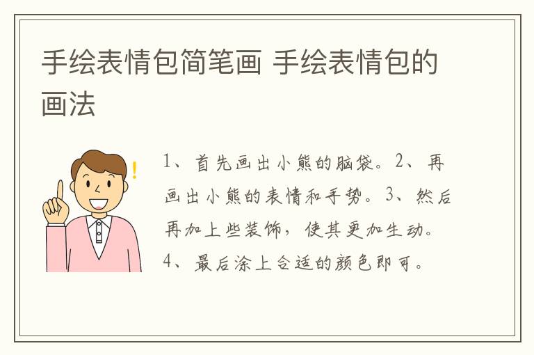 手绘表情包简笔画 手绘表情包的画法 知识分享 23年2月10日 编辑 童画 取消关注 关注 私信 。 1、首先画出小熊的脑袋。 2、再画出小熊的表情和手势。 3、然后再加上些装饰,使其更加生动。 4、最后涂上合适的颜色即可。 No related posts. 本文内容由互联网用户自发贡献,该文观点仅代表作者本人。本站仅提供信息存储空间服务,不拥有所有权,不承担相关法律责任。如发现本站有涉嫌抄袭侵权/违法违规的内容, 请发送邮件至 2245678901@qq.com 举报,一经查实,本站将立刻删除。 给TA打赏 共{{data.count}}人 人已打赏