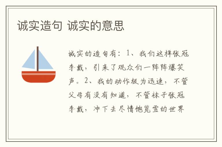 诚实的造句有:1、我们这样张冠李戴,引来了观众们一阵阵爆笑声。2、我的动作极为迅速,不管父母有没有知道,不管袜子张冠李戴,冲下去尽情饱览雪的世界。3、美好的东西不胜其多,如果盲目追求那种流行的性格,不成东施效颦的笑柄,也会留下张冠李戴的遗憾。4、在刚开始的那几天,您总是张冠李戴地把这个同学叫成那个同学,同学们私下都笑您好“傻”。