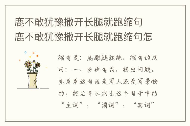 “鹿不敢犹豫撒开长腿就跑。”缩句是“鹿撒腿就跑。”