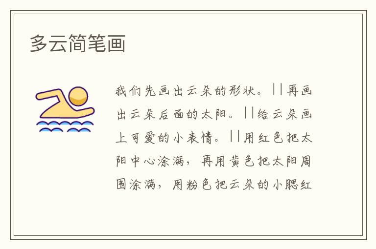 多云简笔画 知识分享 9小时前 编辑 童画 取消关注 关注 私信 1、我们先画出云朵的形状。 2、再画出云朵后面的太阳。 3、给云朵画上可爱的小表情。 4、用红色把太阳中心涂满,再用黄色把太阳周围涂满,用粉色把云朵的小腮红涂满,最后用灰色把云朵的周围涂上就完成啦。 No related posts. 本文内容由互联网用户自发贡献,该文观点仅代表作者本人。本站仅提供信息存储空间服务,不拥有所有权,不承担相关法律责任。如发现本站有涉嫌抄袭侵权/违法违规的内容, 请发送邮件至 2245678901@qq.com 举报,一经查实,本站将立刻删除。 给TA打赏 共{{data.count}}人 人已打赏