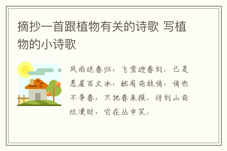 风雨送春归,飞雪迎春到。已是悬崖百丈冰,犹有花枝俏,俏也不争春,只把春来报。待到山花烂漫时,它在丛中笑。