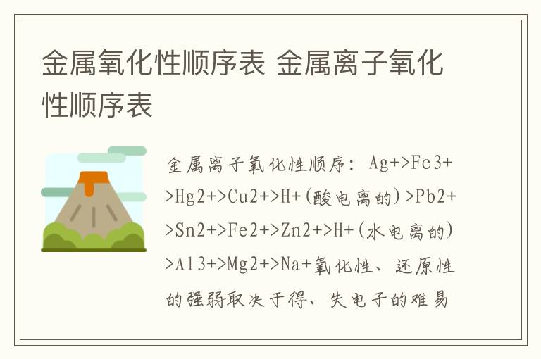 金属离子氧化性顺序:Hg2+>Cu2+>H+(酸电离的)>Pb2+>Sn2+>Fe2+>Zn2+>H+(水电离的)>Al3+>Mg2+>Na+氧化性、还原性的强弱取决于得、失电子的难易程度,与得失电子数目的多少无关。