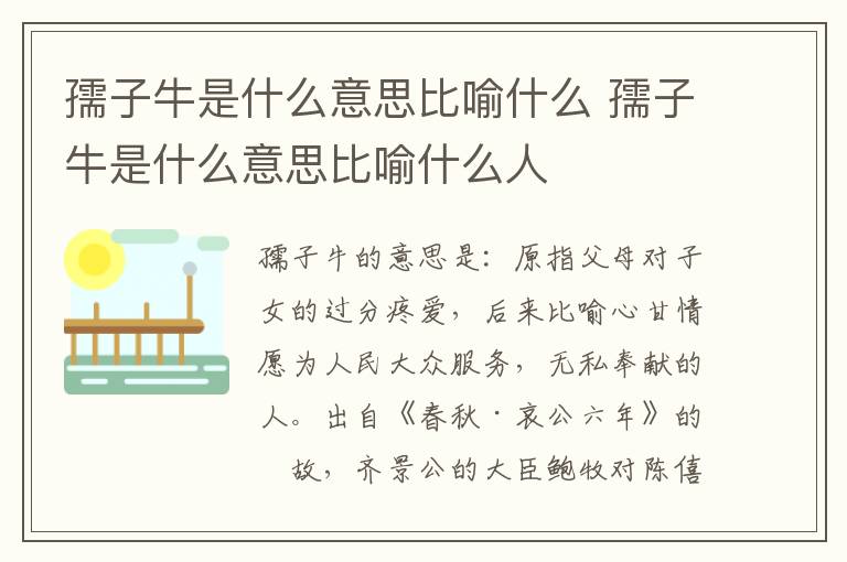 齐景公的大臣鲍牧对陈僖子说:"汝忘君之为孺子牛而折其齿乎?而背之也!" (译文:你忘了君王给荼做孺子牛的时侯折断牙齿的事了吗?今天你违背了先王的遗命啊!)所以,那时"孺子牛"的原意是表示父母对子女的过分疼爱。