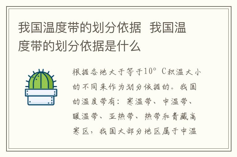 我国温度带的划分依据 我国温度带的划分依据是什么 知识分享 23年2月10日 编辑 童画 取消关注 关注 私信 我国温度带是根据各地大于等于10°C积温大小的不同来作为划分依据的。 我国的温度带有:寒温带、中温带、暖温带、亚热带、热带和青藏高寒区,我国大部分地区属于中温带、暖温带、亚热带和热带,而寒温带和青藏高寒区只占国土面积的27.9%。 No related posts. 本文内容由互联网用户自发贡献,该文观点仅代表作者本人。本站仅提供信息存储空间服务,不拥有所有权,不承担相关法律责任。如发现本站有涉嫌抄袭侵权/违法违规的内容, 请发送邮件至 2245678901@qq.com 举报,一经查实,本站将立刻删除。 给TA打赏 共{{data.count}}人 人已打赏